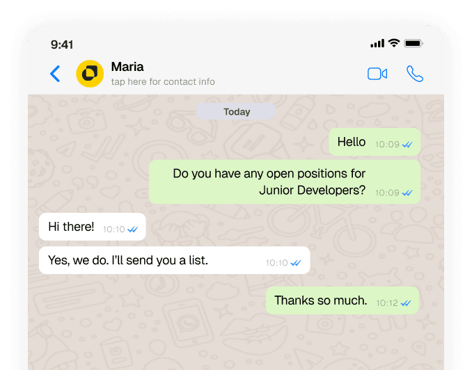 Anxiously awaiting results? Get real-time status updates whenever you want. Just write to Maria and she’ll tell you what you want to know.